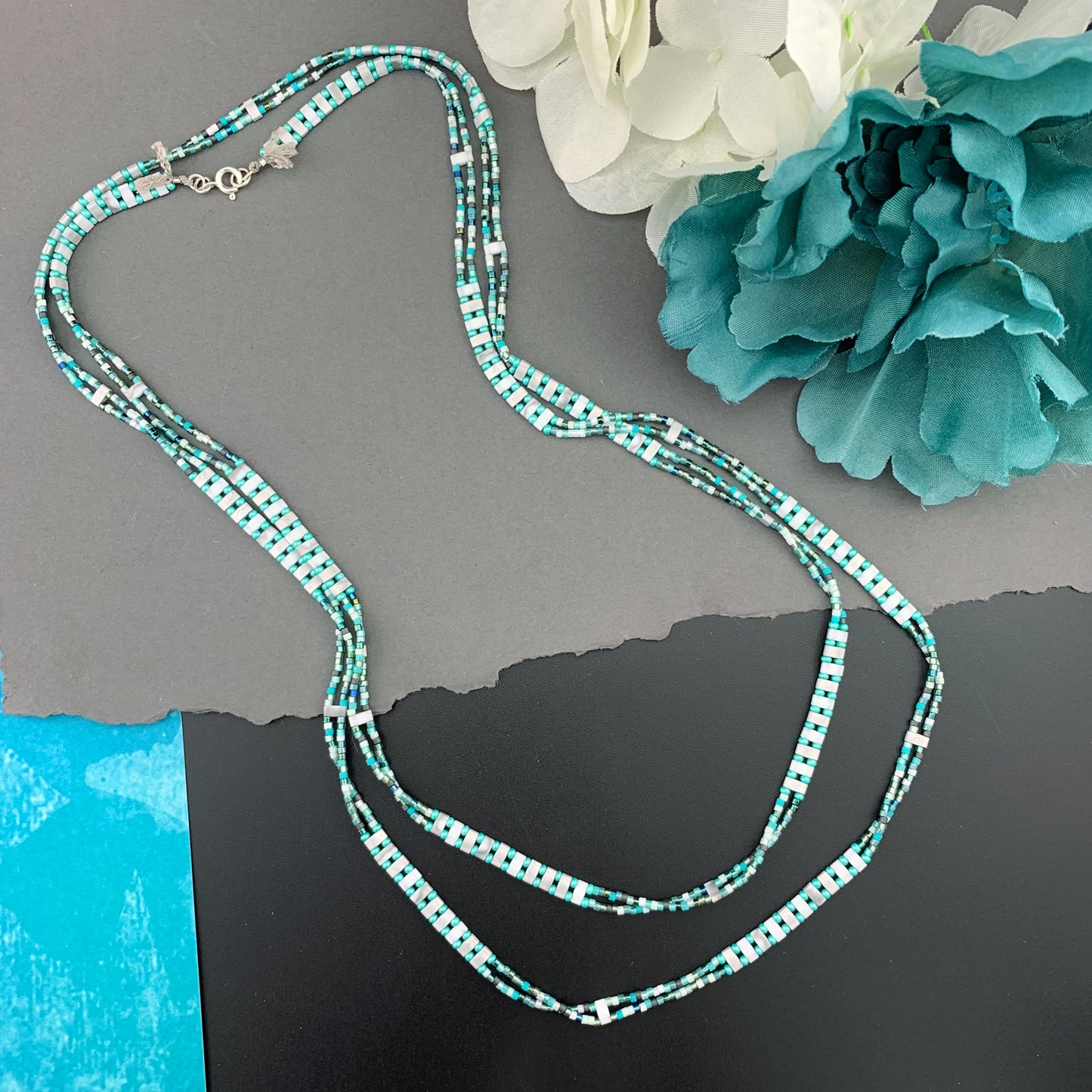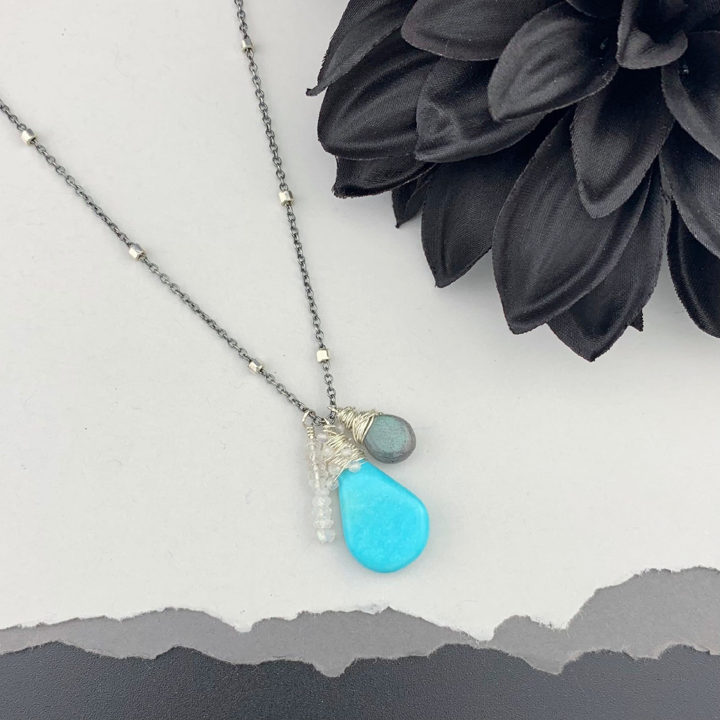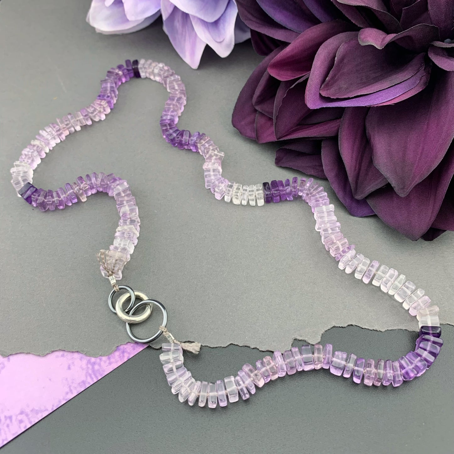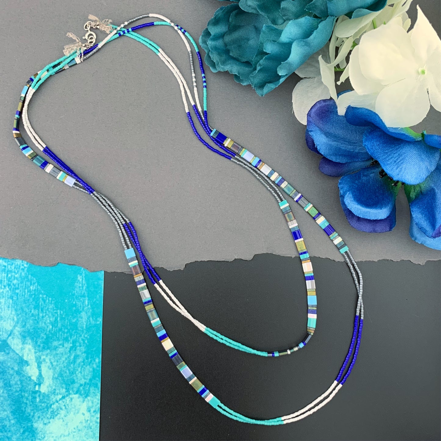 Beautiful, naturally patterned smooth and faceted gemstones are hand knotted onto silk cord, providing a luxurious, supple drape. Perfect worn solo, fabulous for layering...
