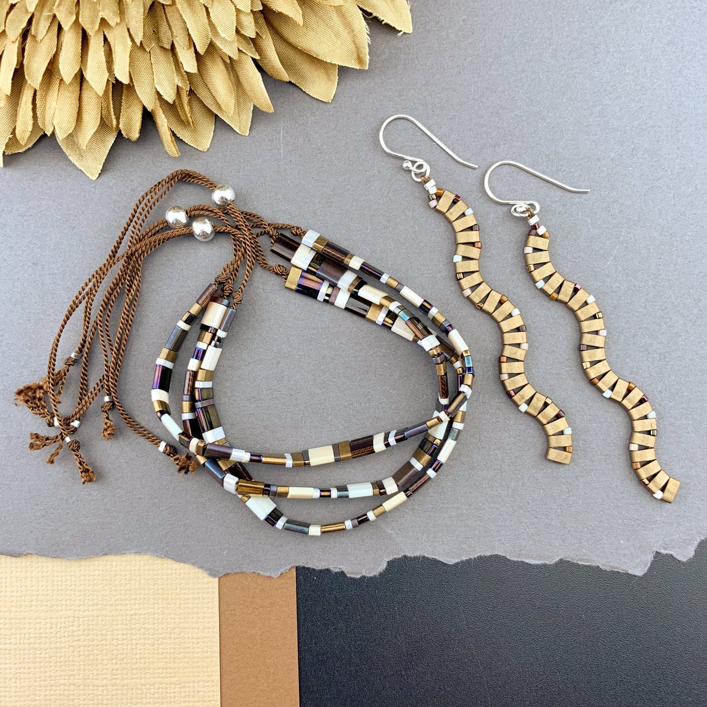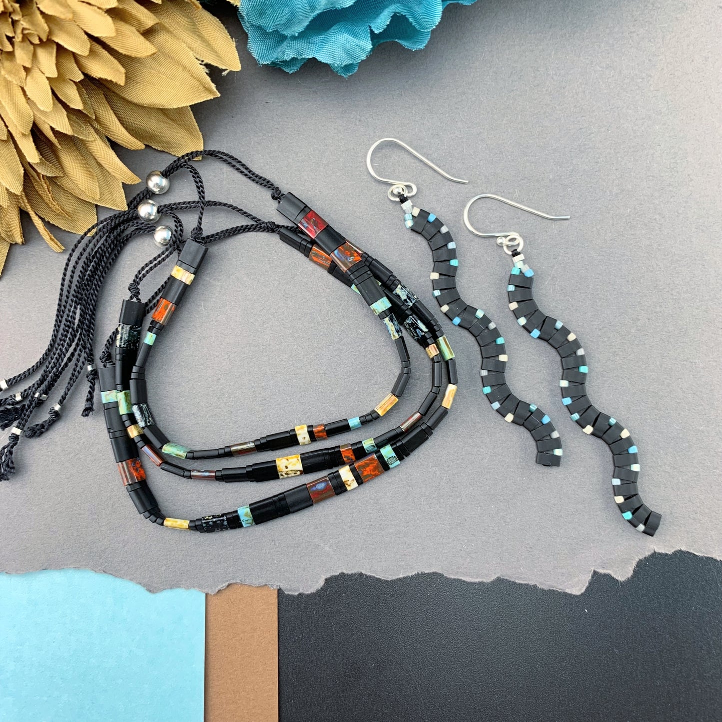 I have created 3 color ways for this style: Ocean, Neutrals and Picasso. There are no rules... I love mixing the Neutrals with the other two colors, and I'm sure you will love mixing and stacking these unique bracelets as much as I do!