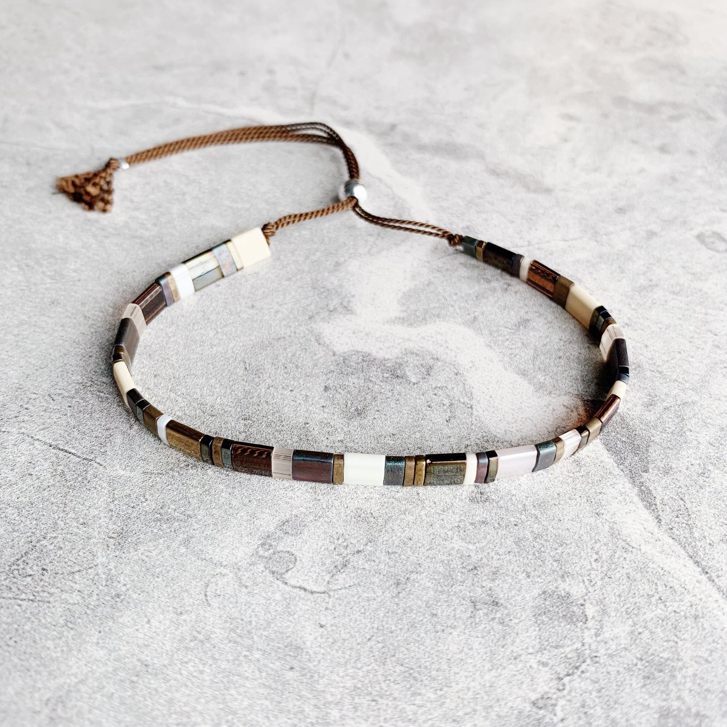 A beautiful mix of Tila beads which are so unique as they sit flat on the wrist, and are perfect for stacking!