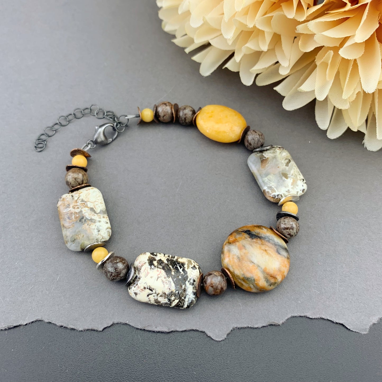 -Mixed Jaspers (Yellow Zebra, Silver Leaf, Brown Snowflake and Yellow)