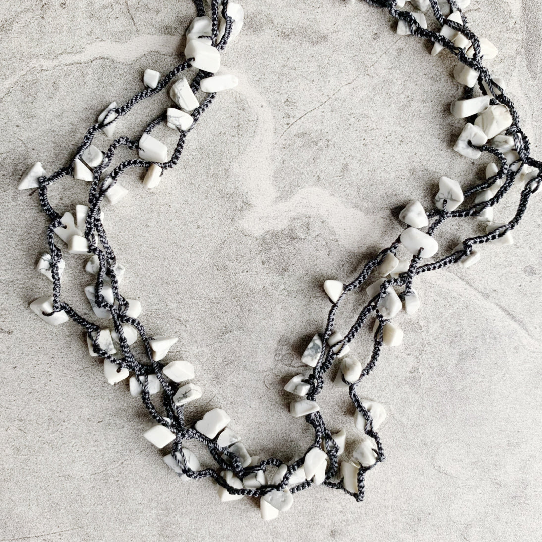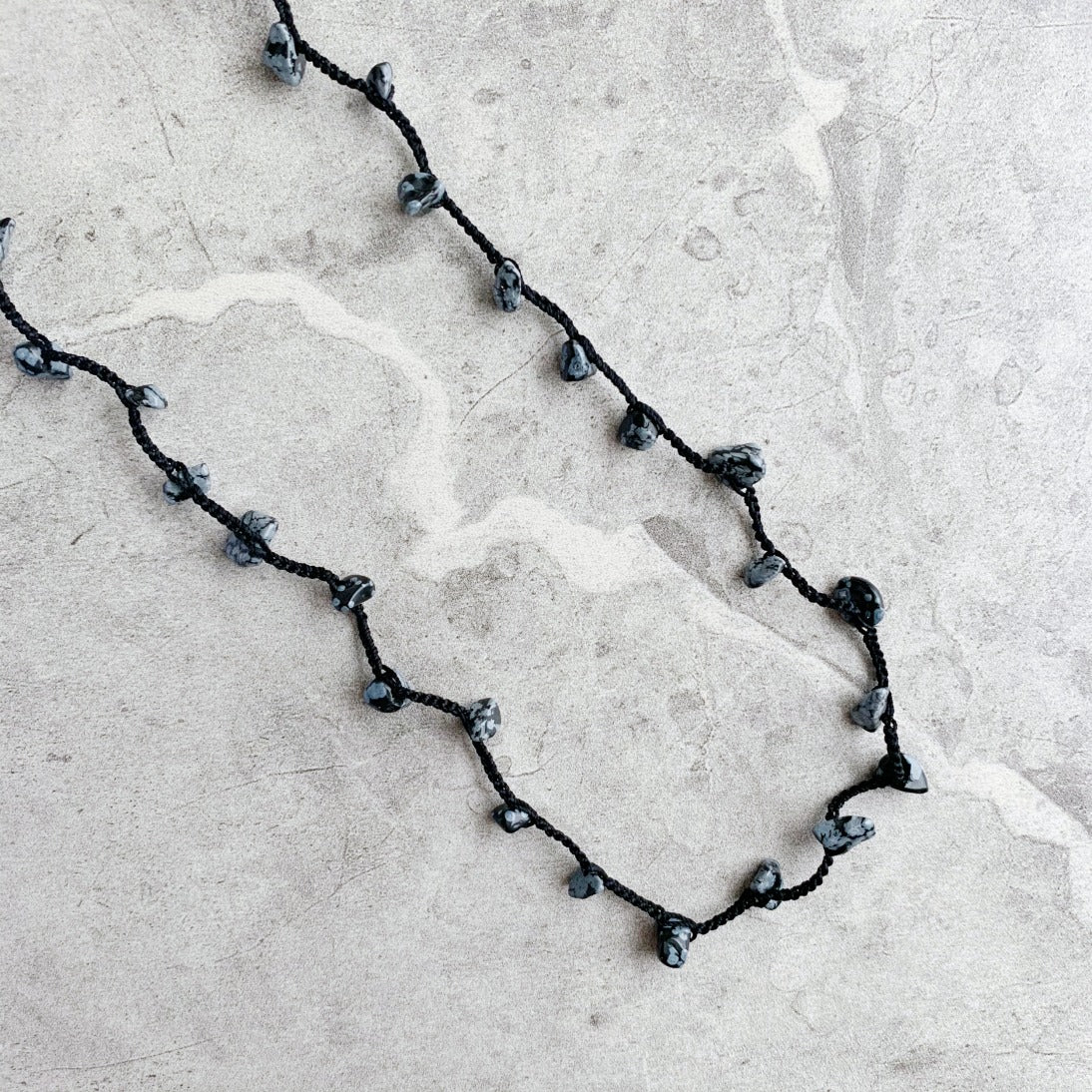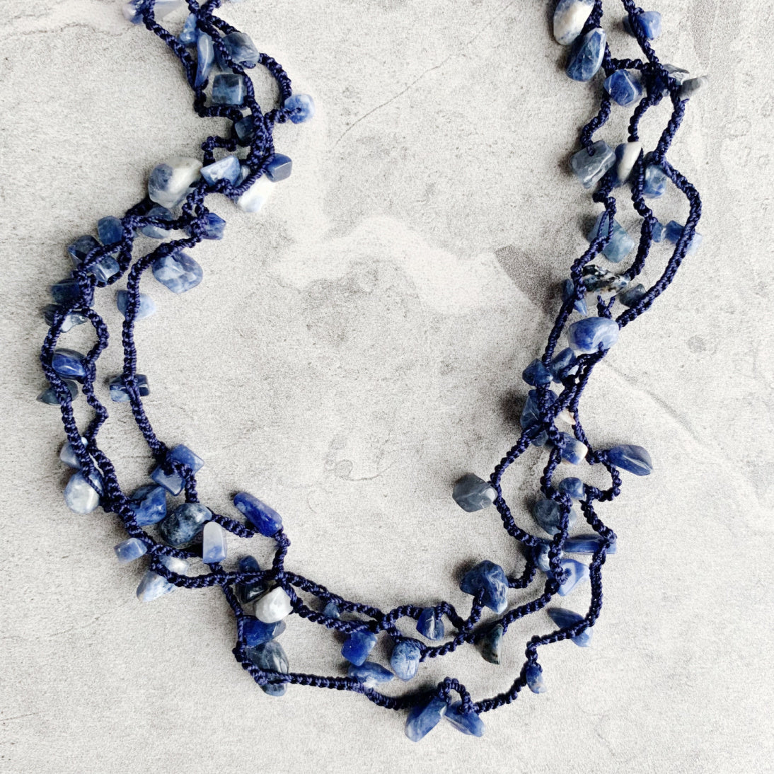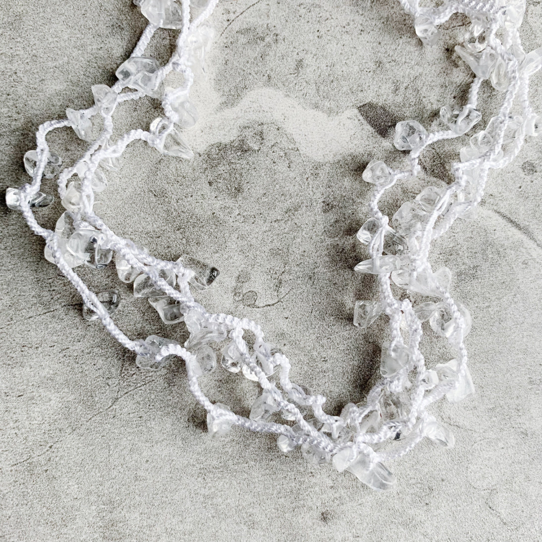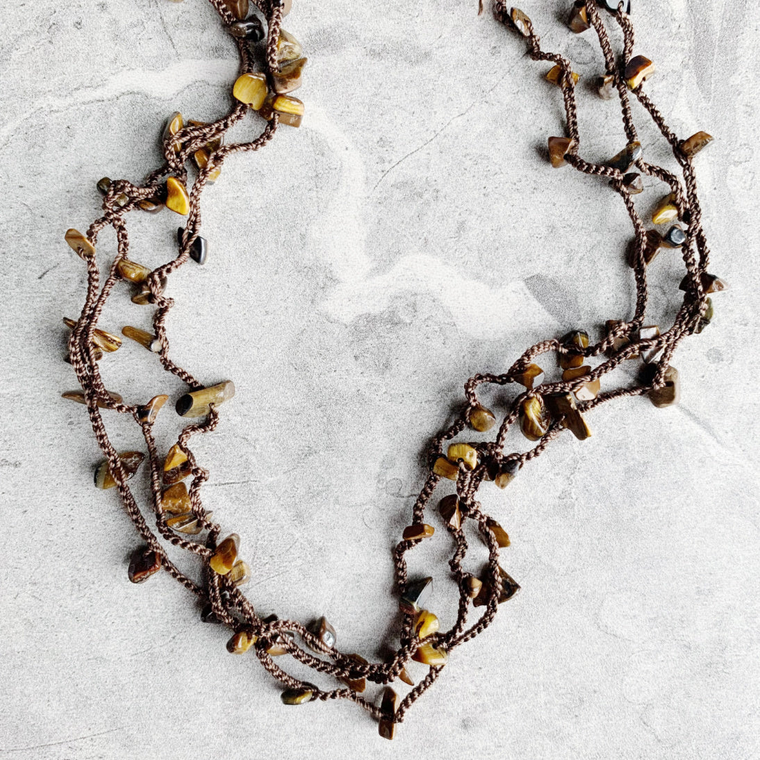 This is a redesigned version of the best selling original including thicker silk thread for even better durability, and named Uninhibited for the very reason that it may be worn all different ways: as a long layering necklace, doubled, wrapped many times as a choker necklace, bracelet, or as an anklet! The airy luxury of silk thread combined with gemstone chips sprinkled in results in softness that can be worn a variety of ways to compliment any outfit.