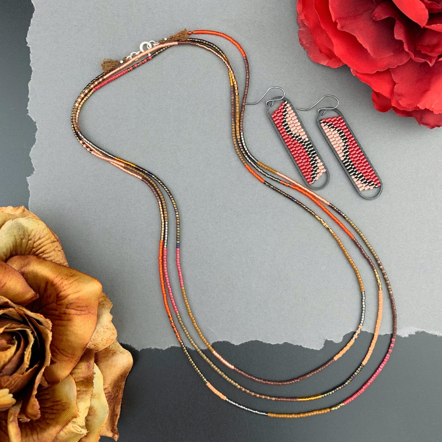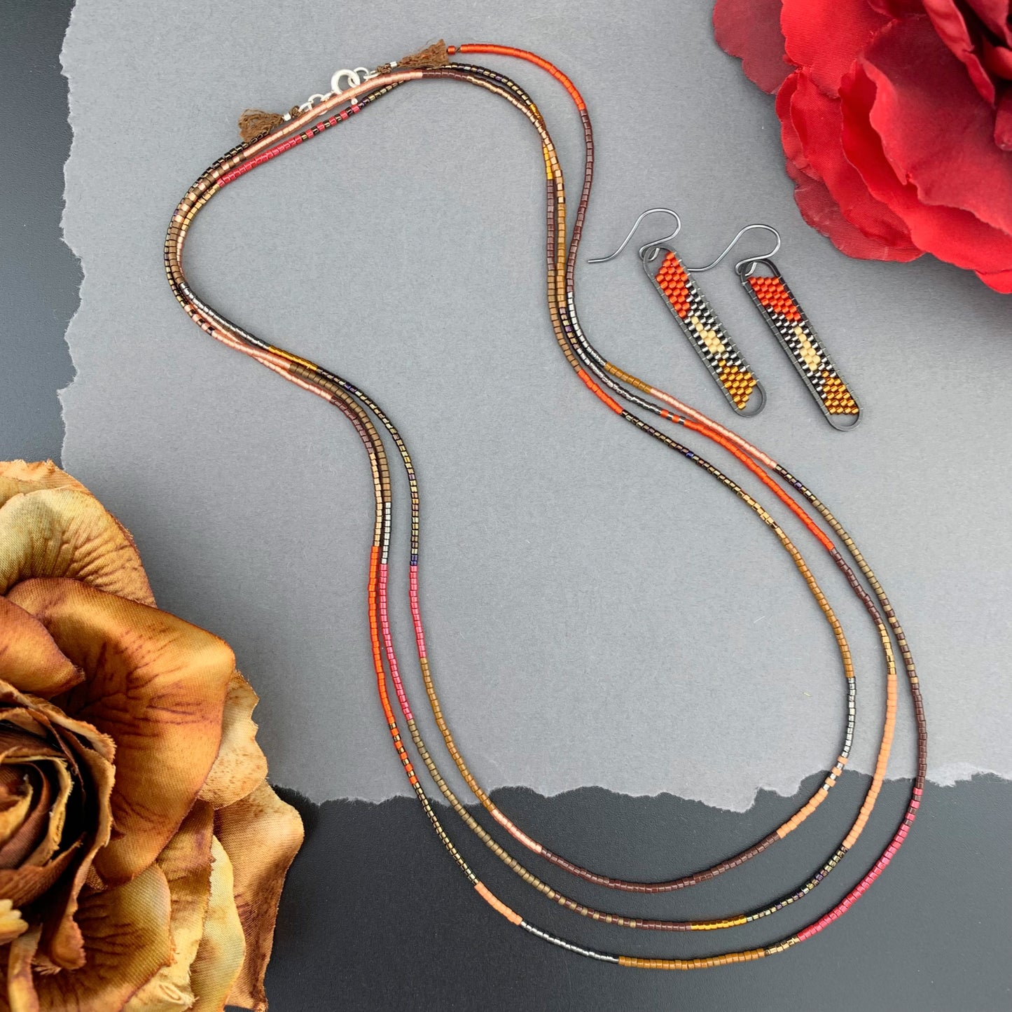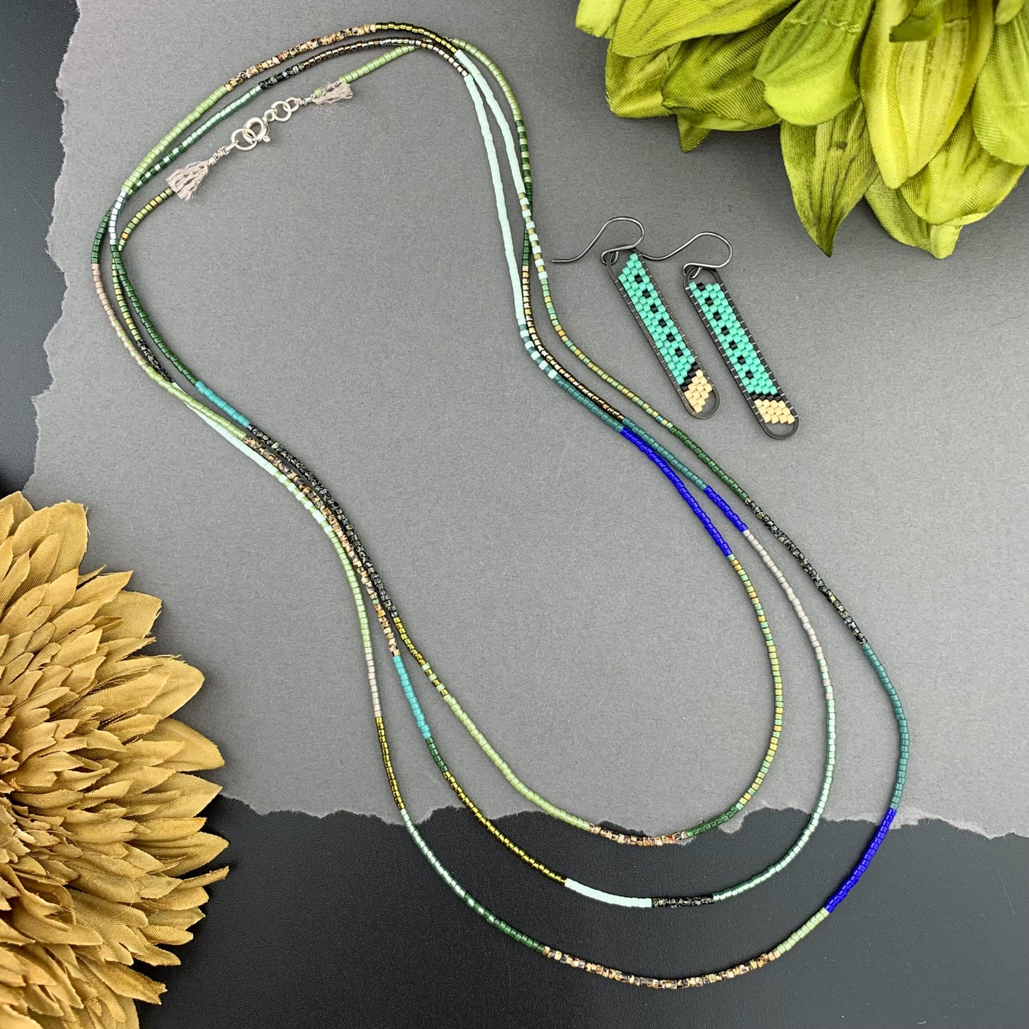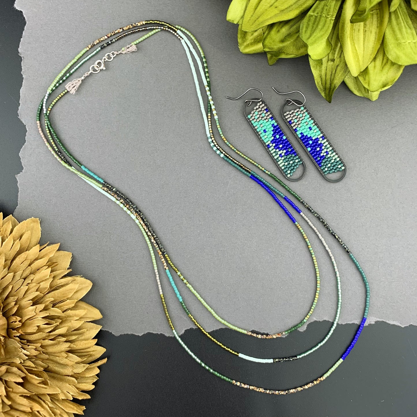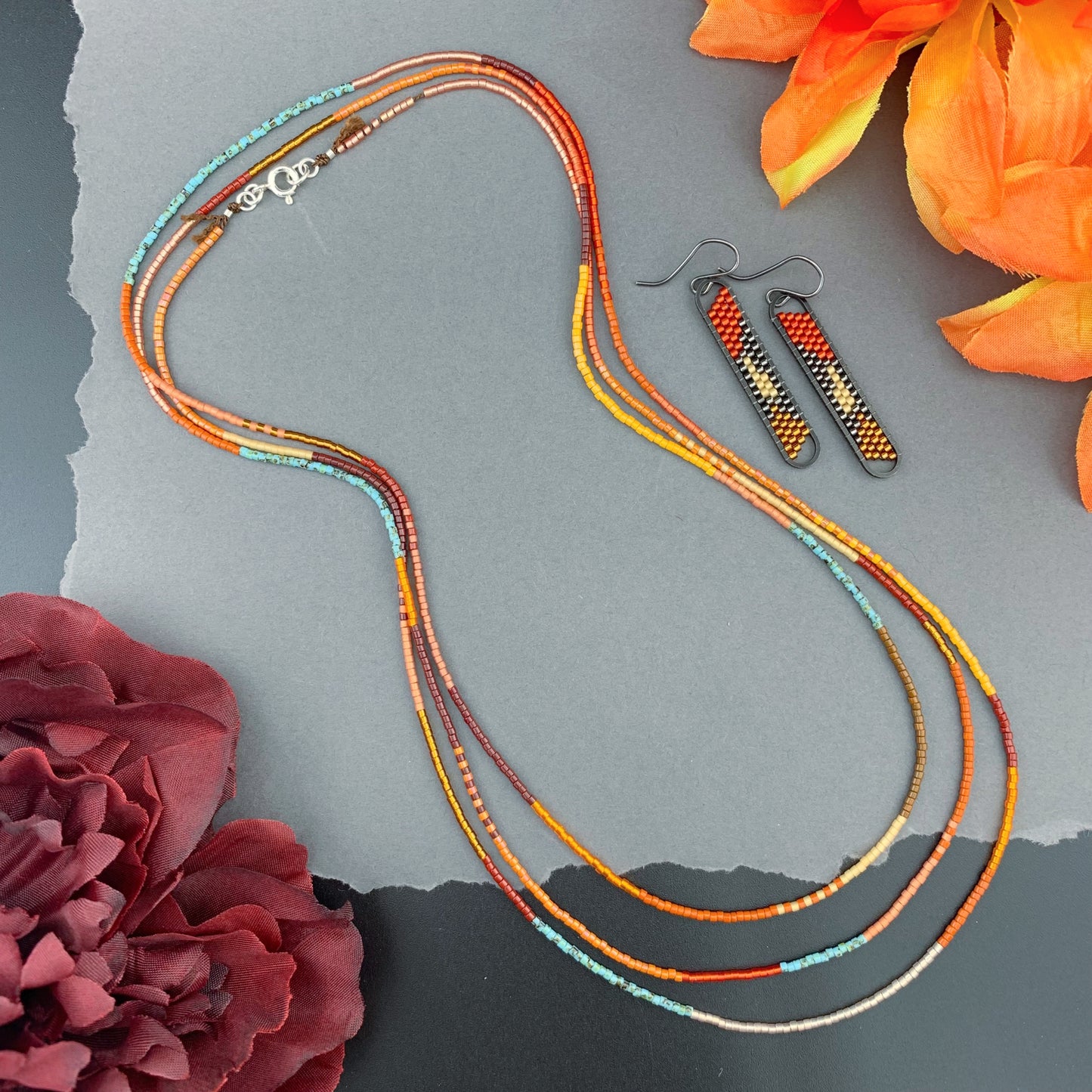 SAVE 10% on these curated colorful sets of Peyote Stitch Oval & Mini Oval Earrings paired with 60" Single Strand Beaded Necklaces in many options.