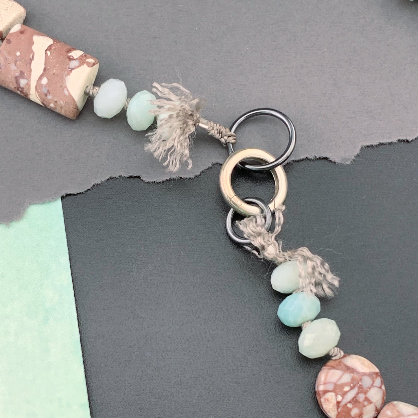Add One Of A Kind Silk Knotted Amazonite and Jasper Gemstone Candy Necklace to the cart
