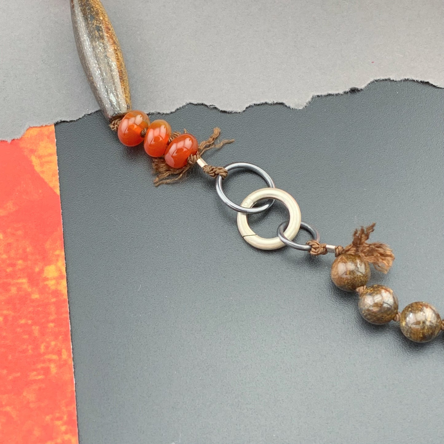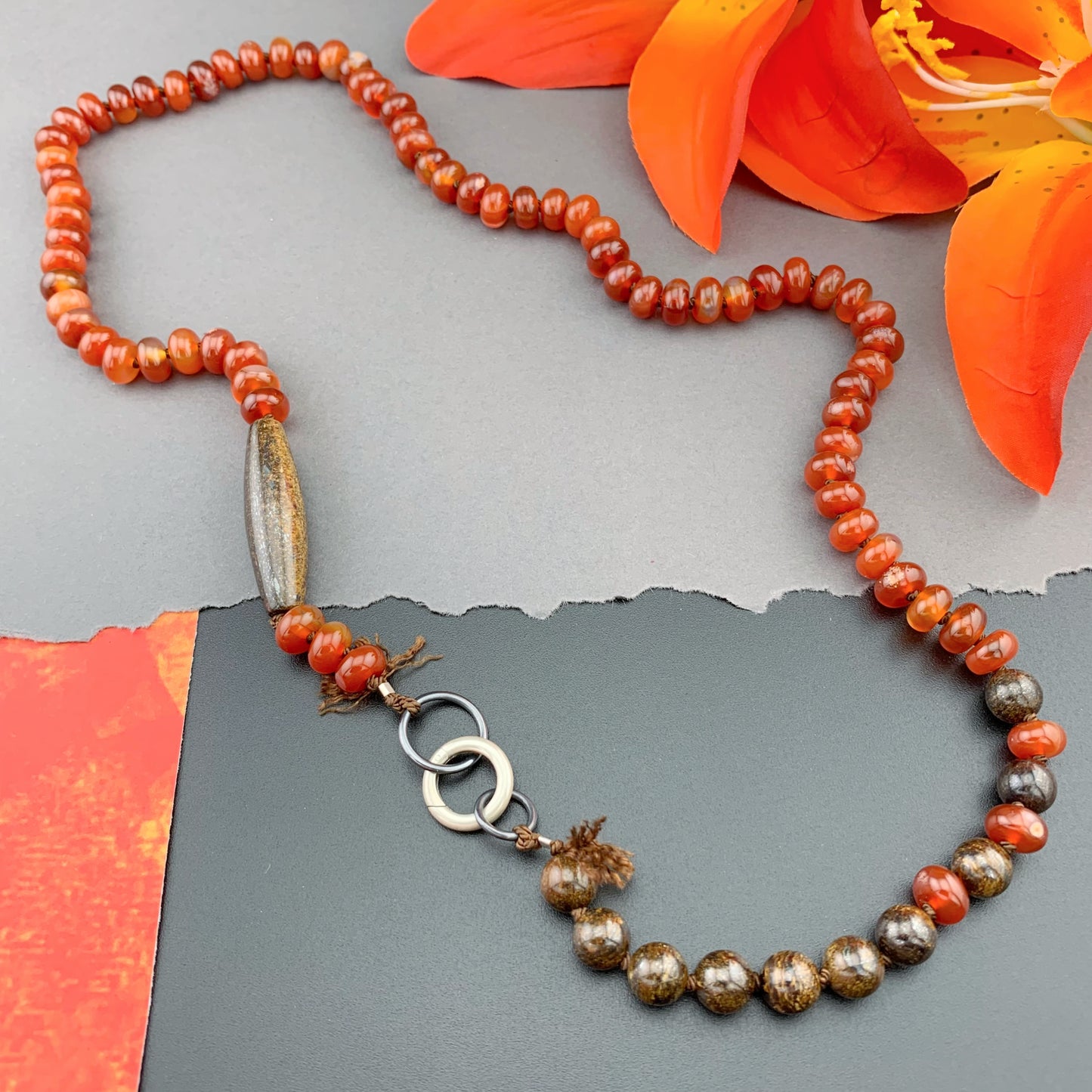Add One Of A Kind Silk Knotted Carnelian and Bronzite Gemstone Candy Necklace to the cart