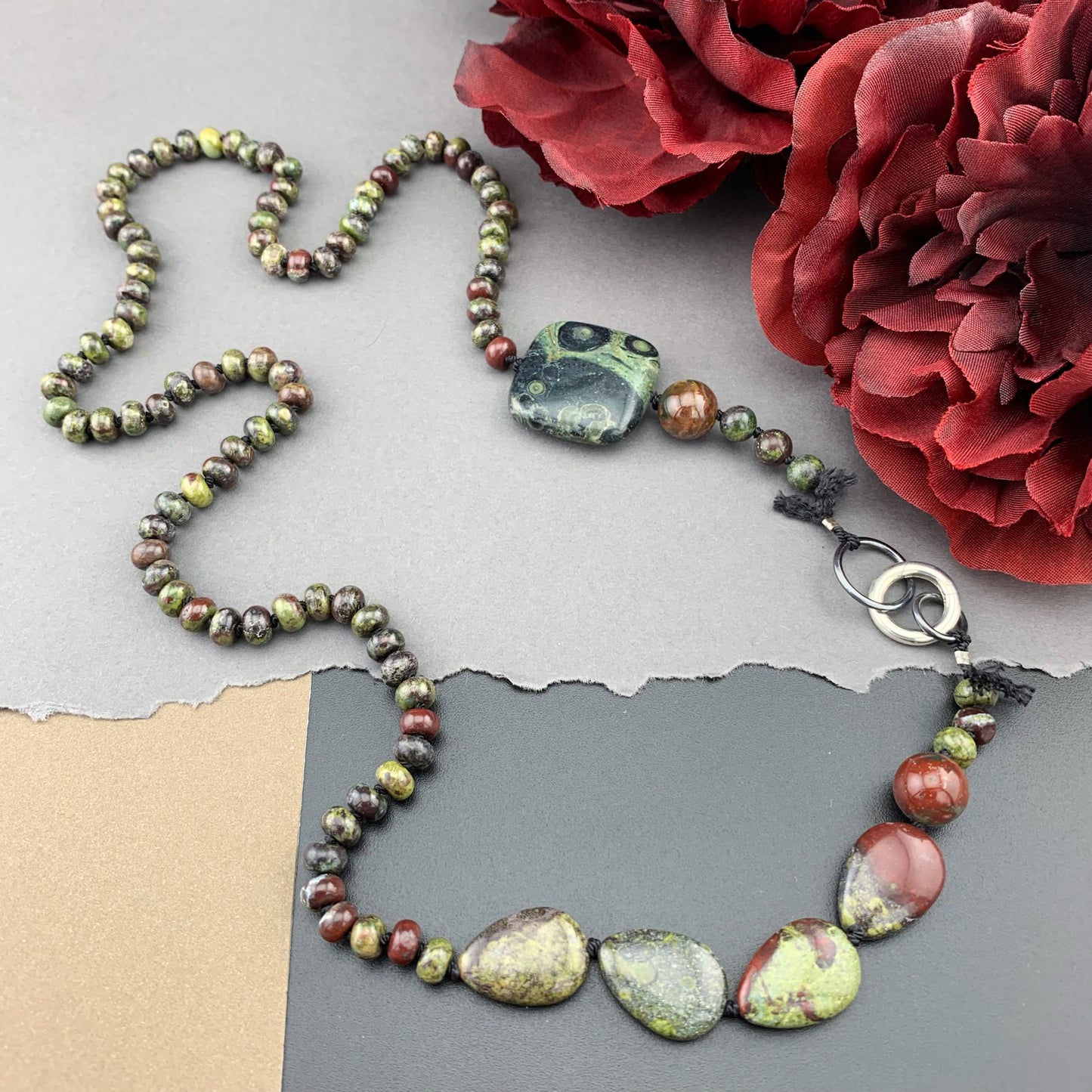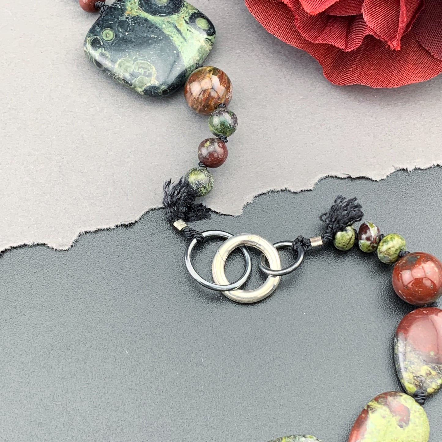 Add One Of A Kind Silk Knotted Dragon's Blood and Kambaba Jasper Gemstone Candy Necklace to the cart