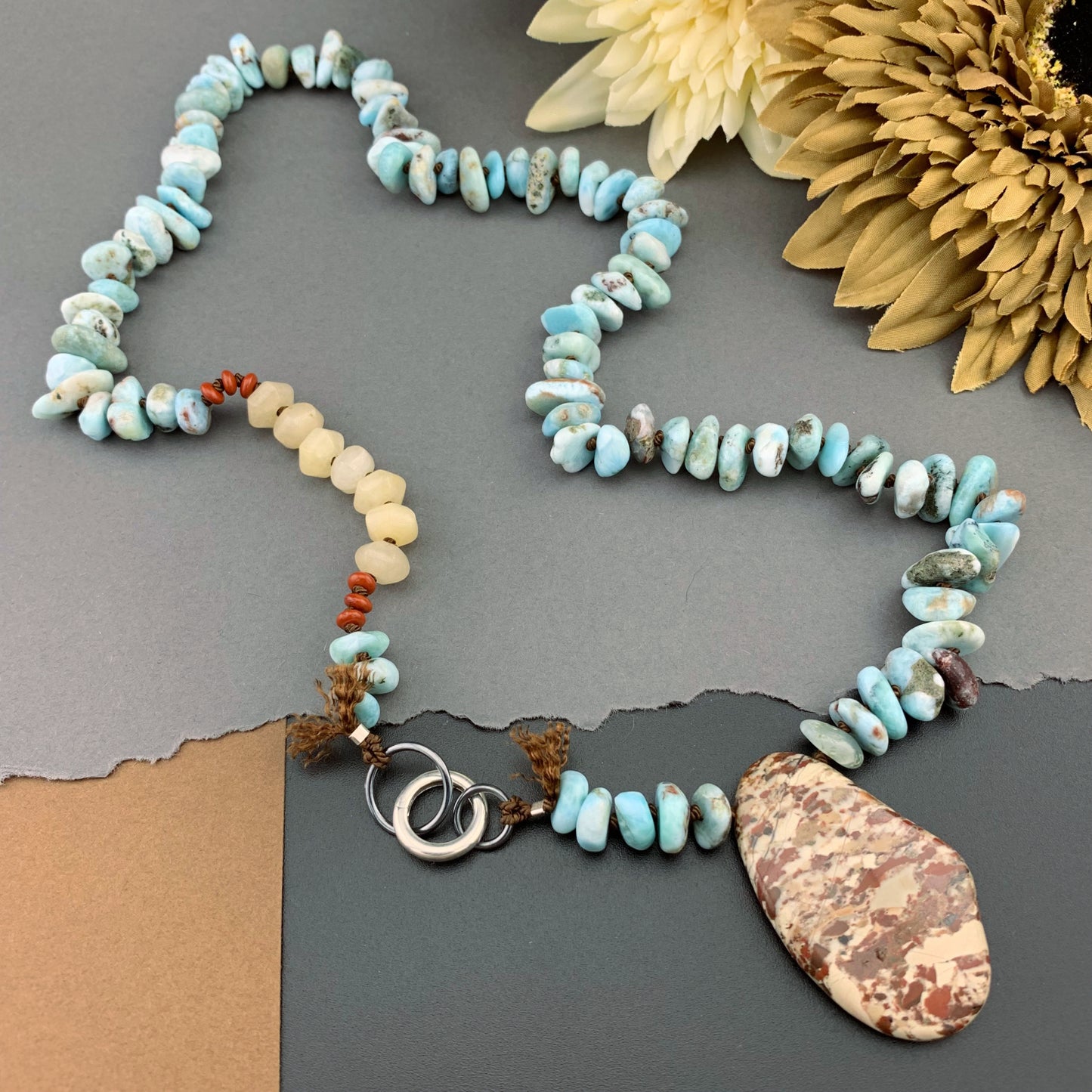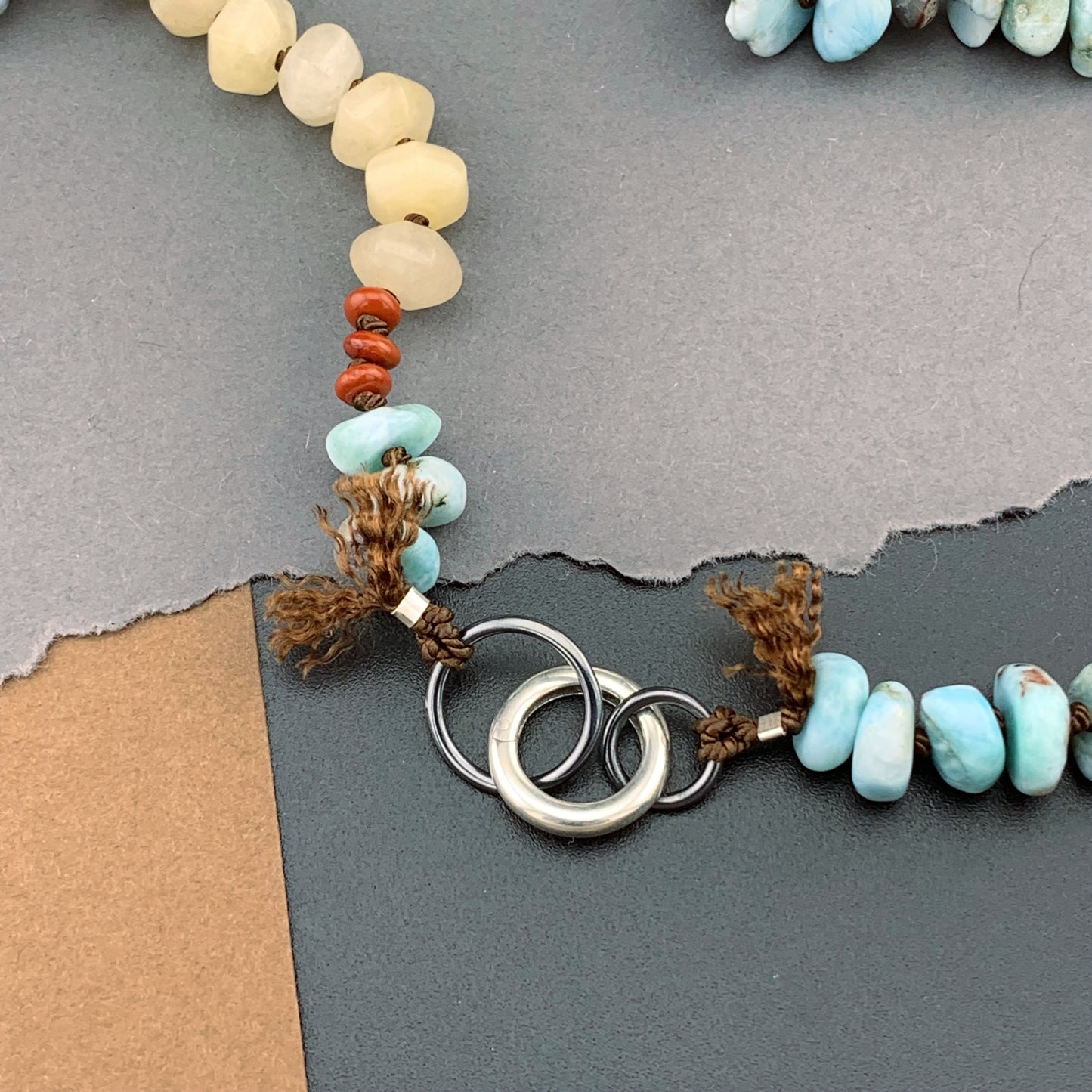 Add One Of A Kind Silk Knotted Larimar, Jasper and Aventurine Gemstone Candy Necklace to the cart