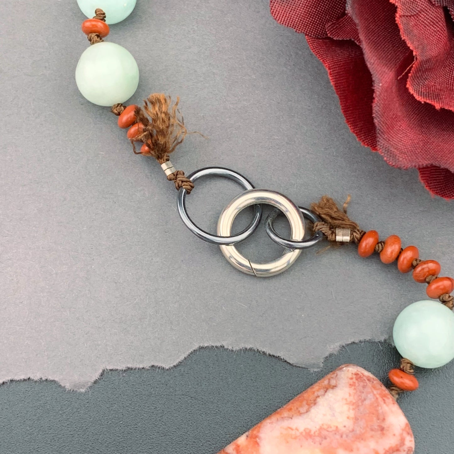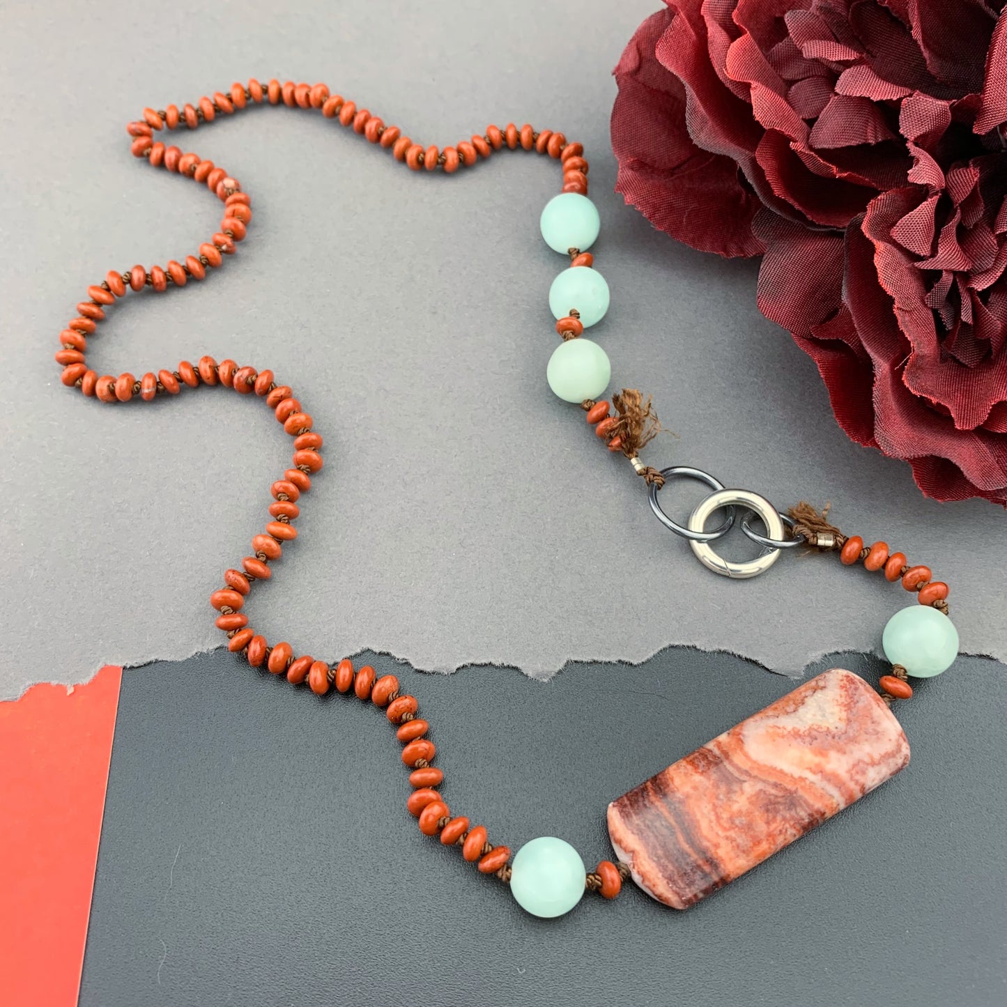 Add One Of A Kind Silk Knotted Red Jasper and Amazonite Gemstone Candy Necklace to the cart