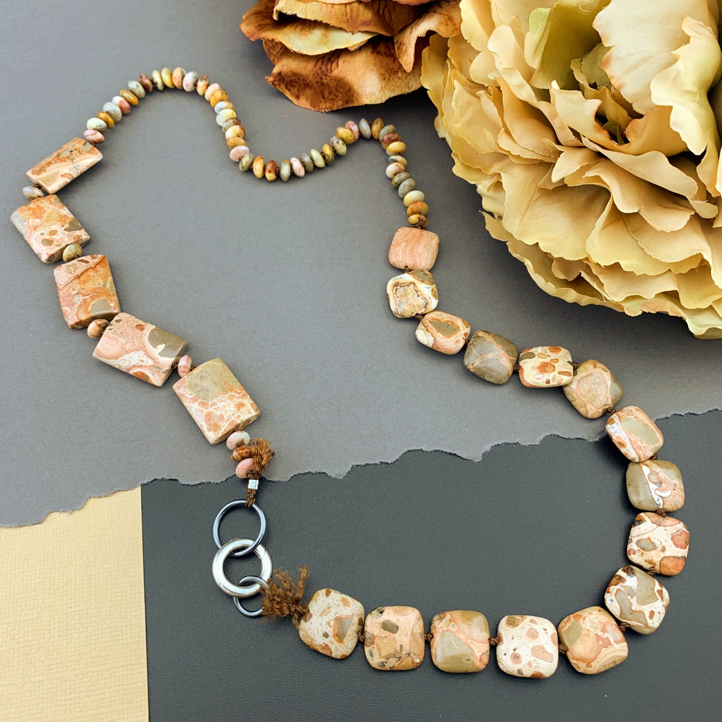 Add One Of A Kind Silk Knotted Rhyolite and Agate Gemstone Candy Necklace to the cart