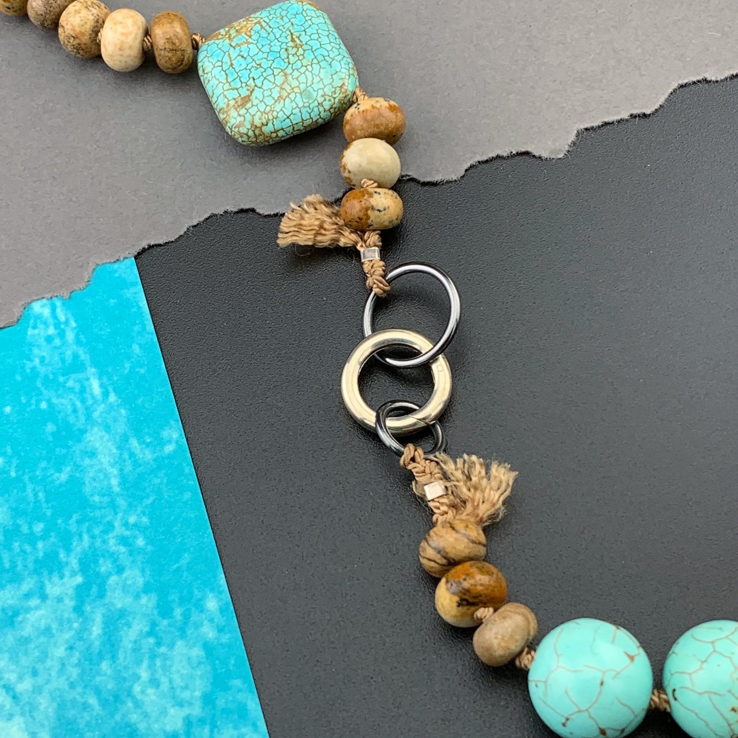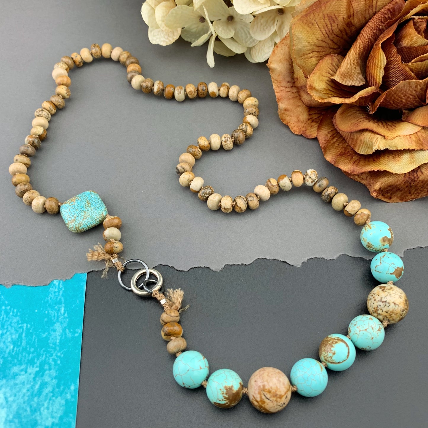 Add One Of A Kind Silk Knotted Picture Jasper and Turquoise Gemstone Candy Necklace to the cart