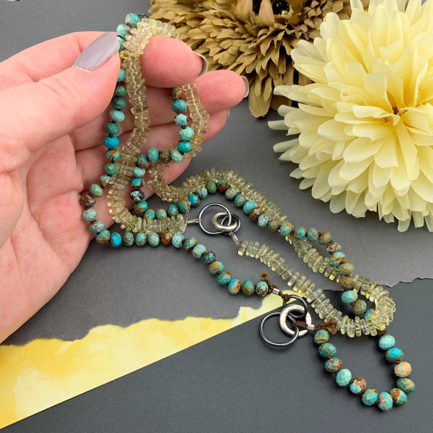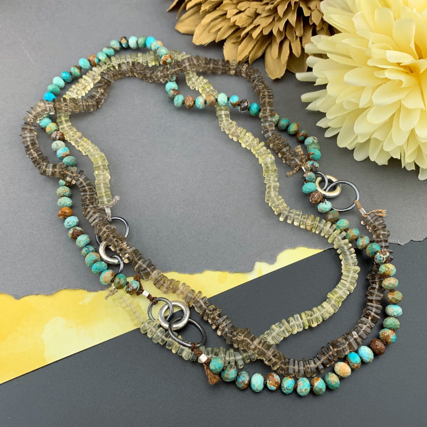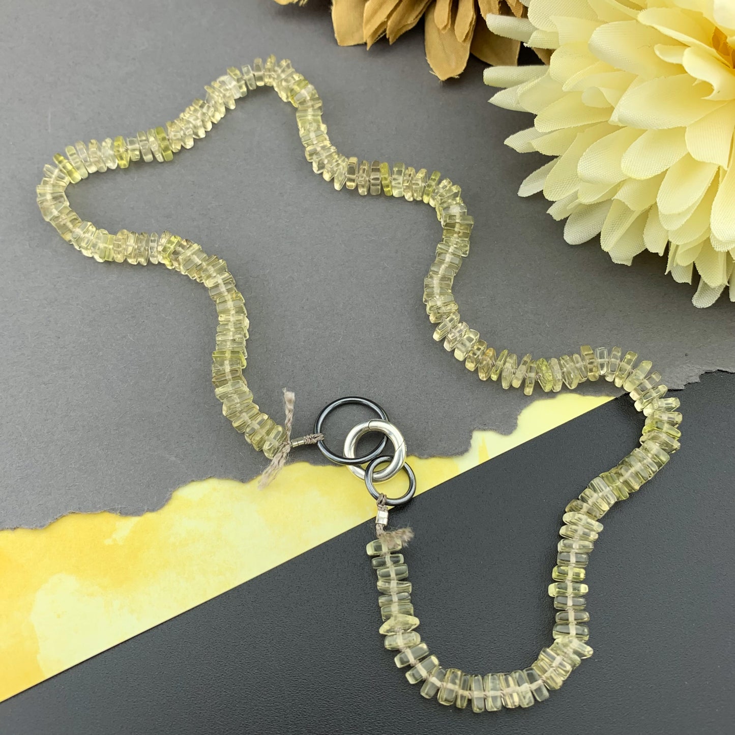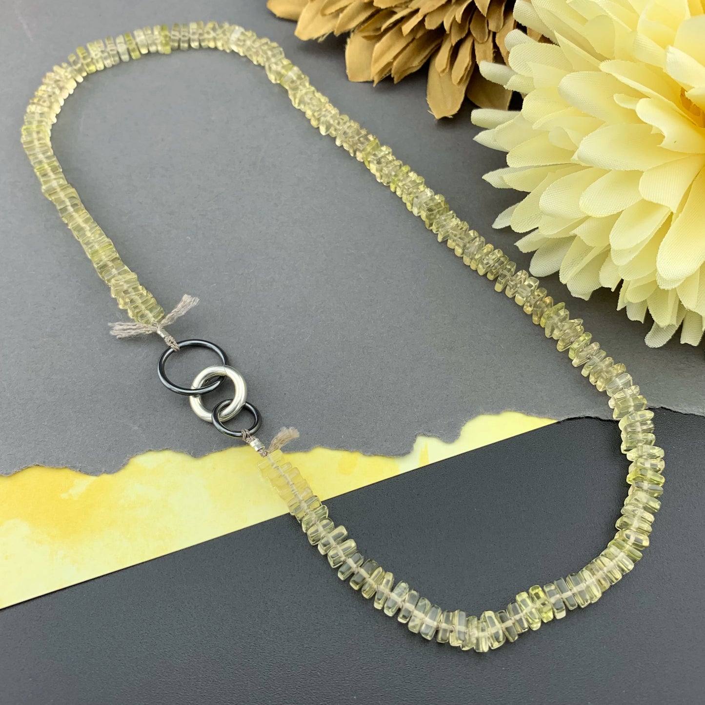 Radiant Necklace - Lemon Quartz Square Heishi Gemstone Candy Necklace