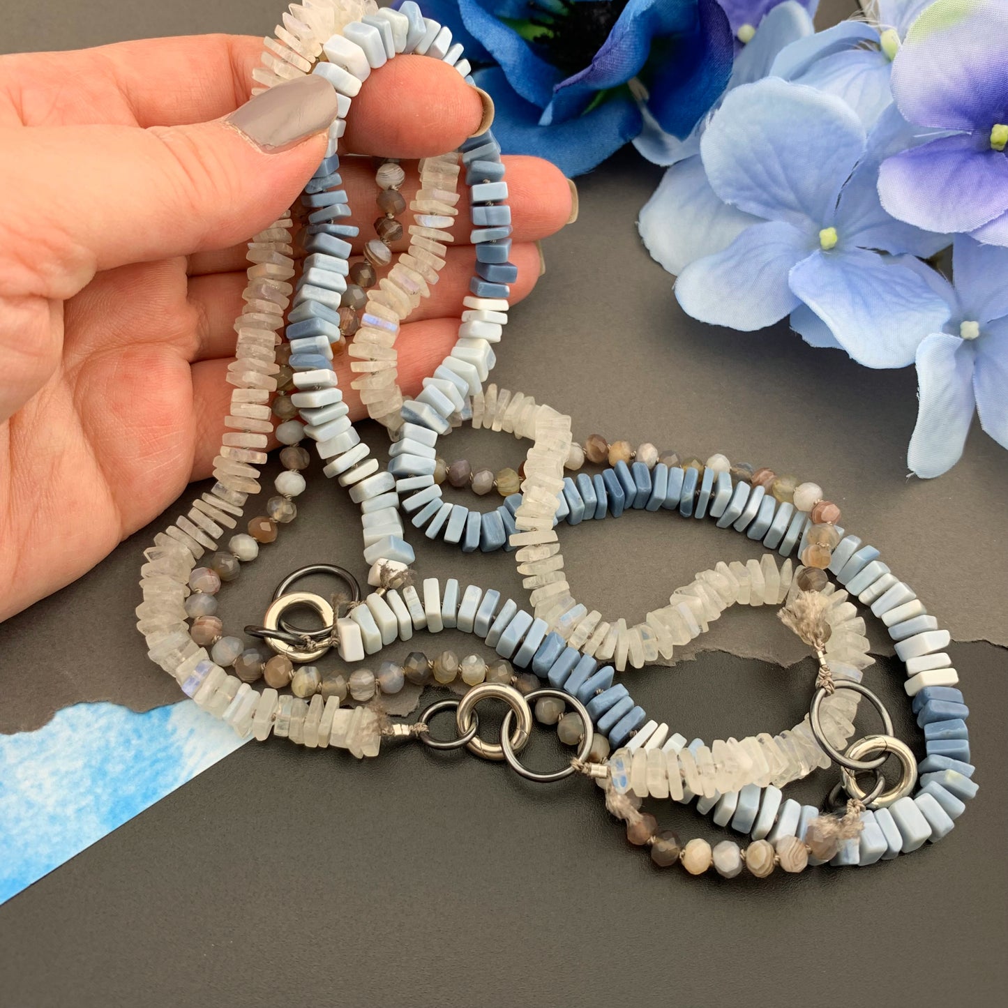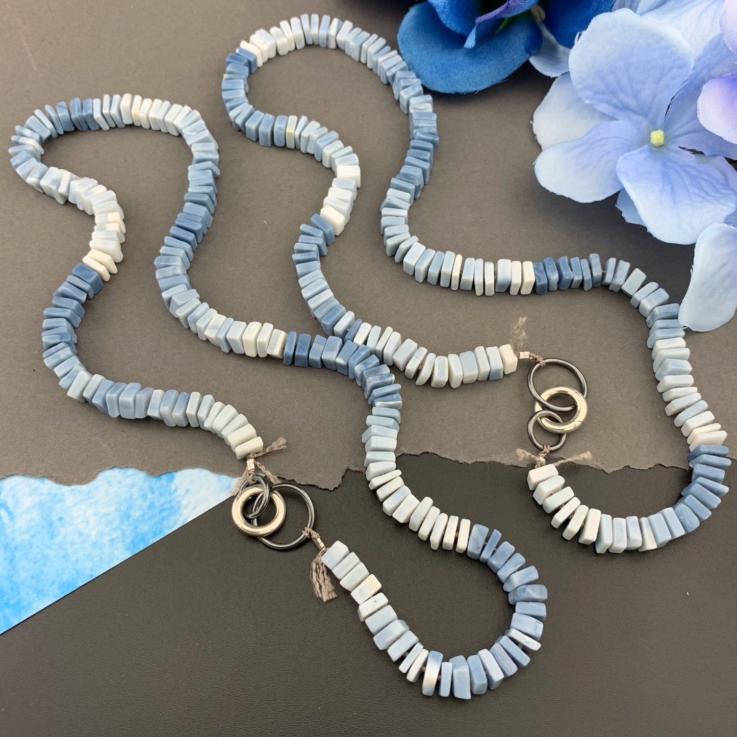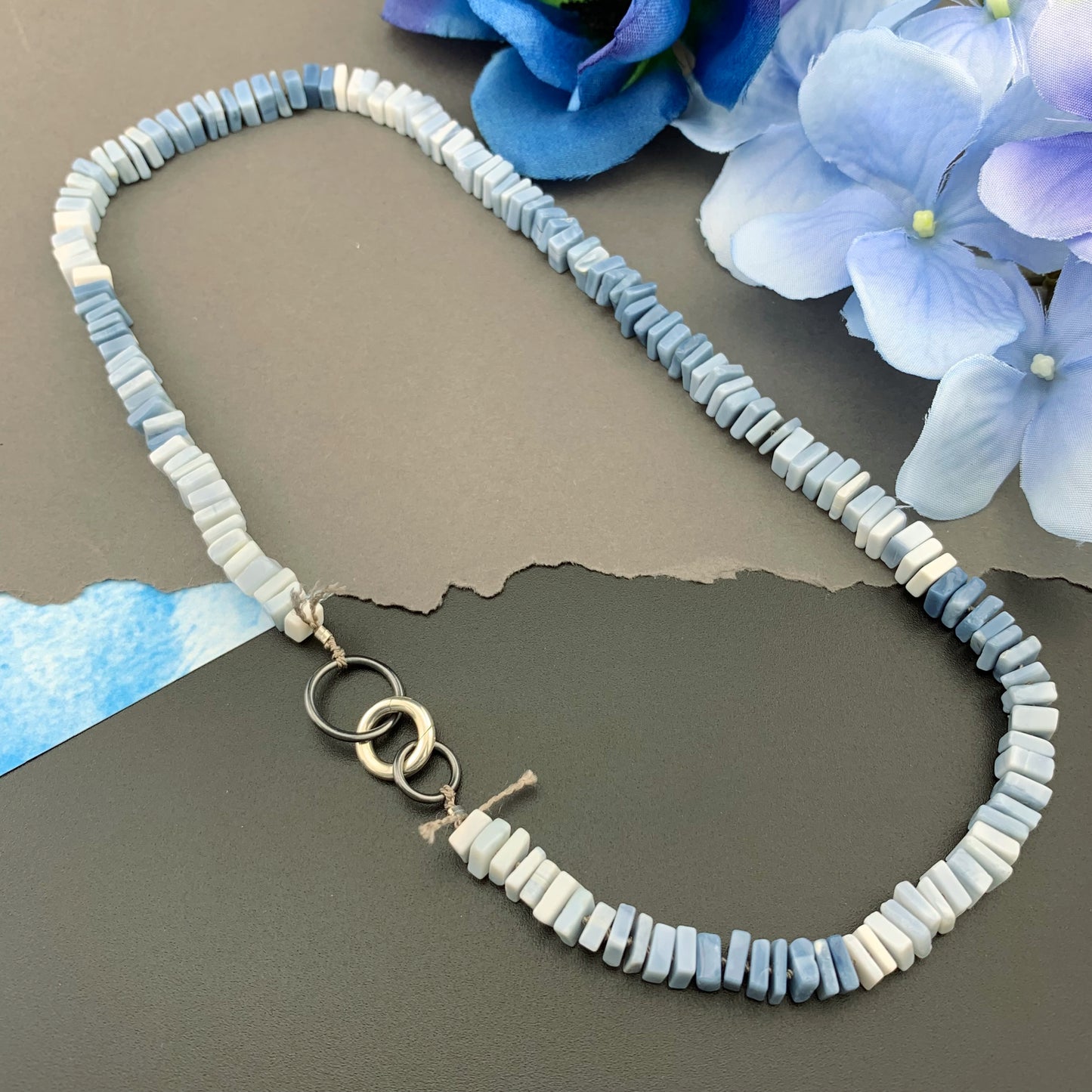 Radiant Necklace - Owyhee Blue Opal Square Heishi Gemstone Candy Necklace