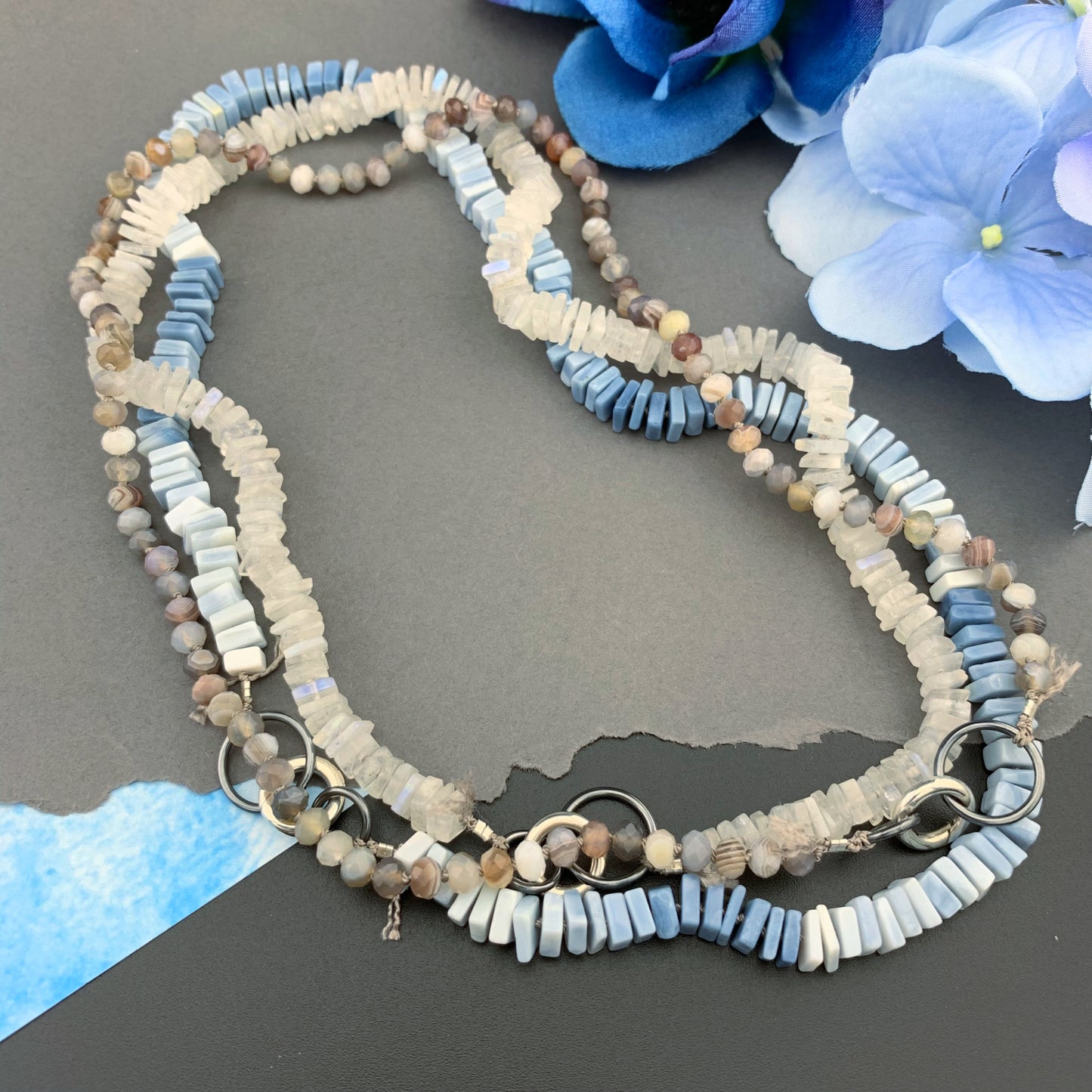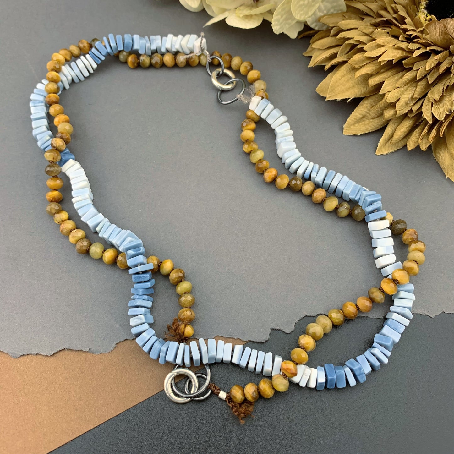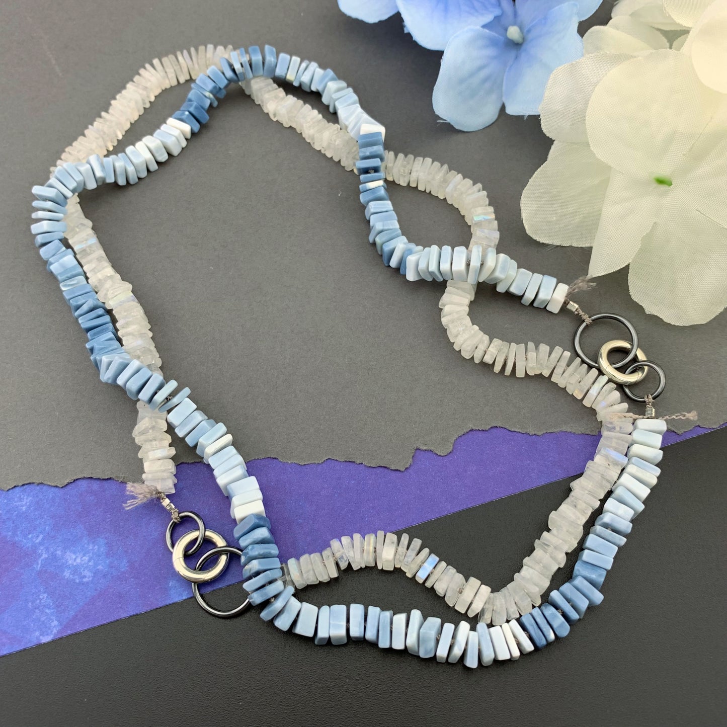 Radiant Necklace - Owyhee Blue Opal Square Heishi Gemstone Candy Necklace