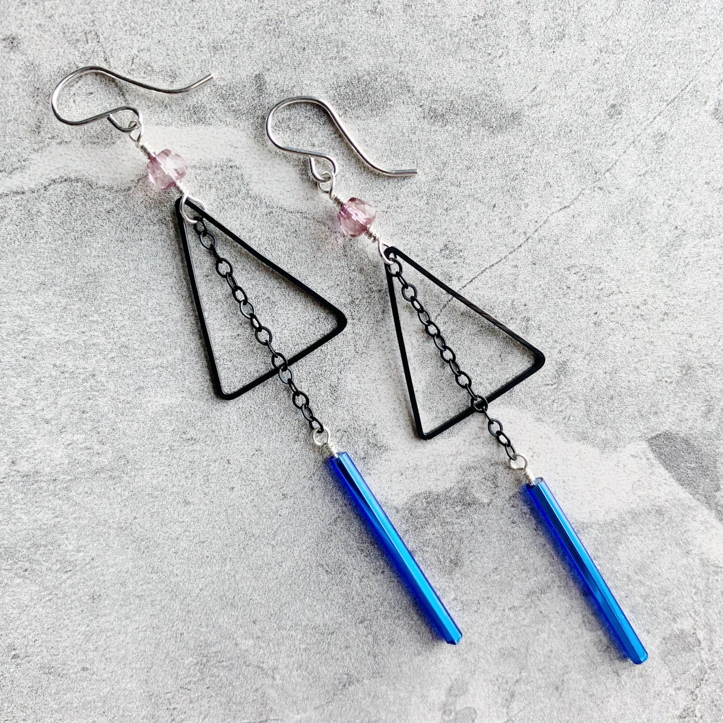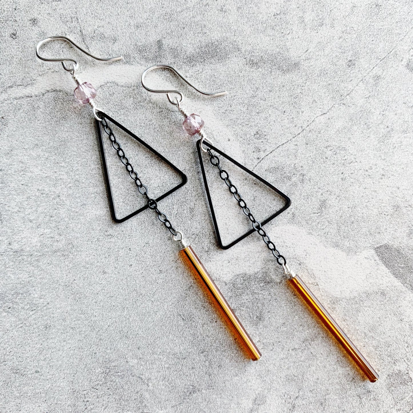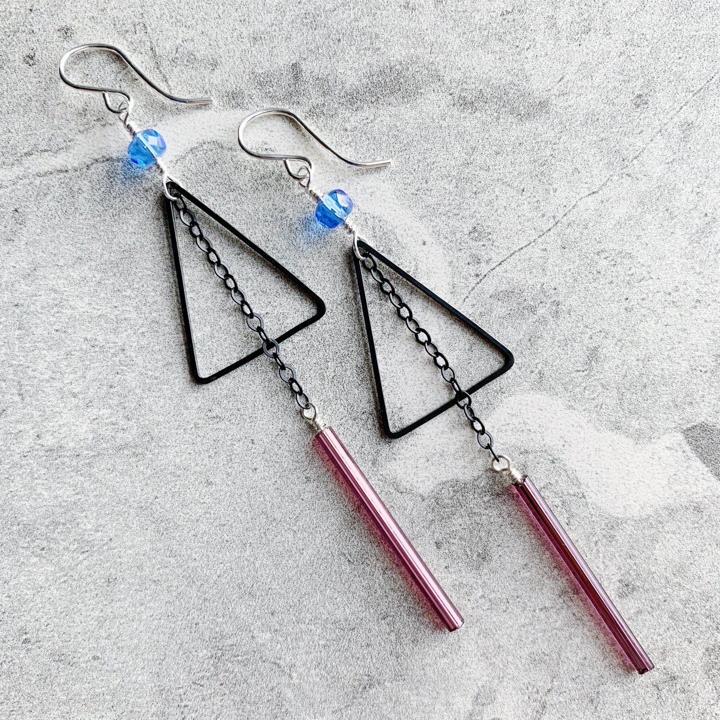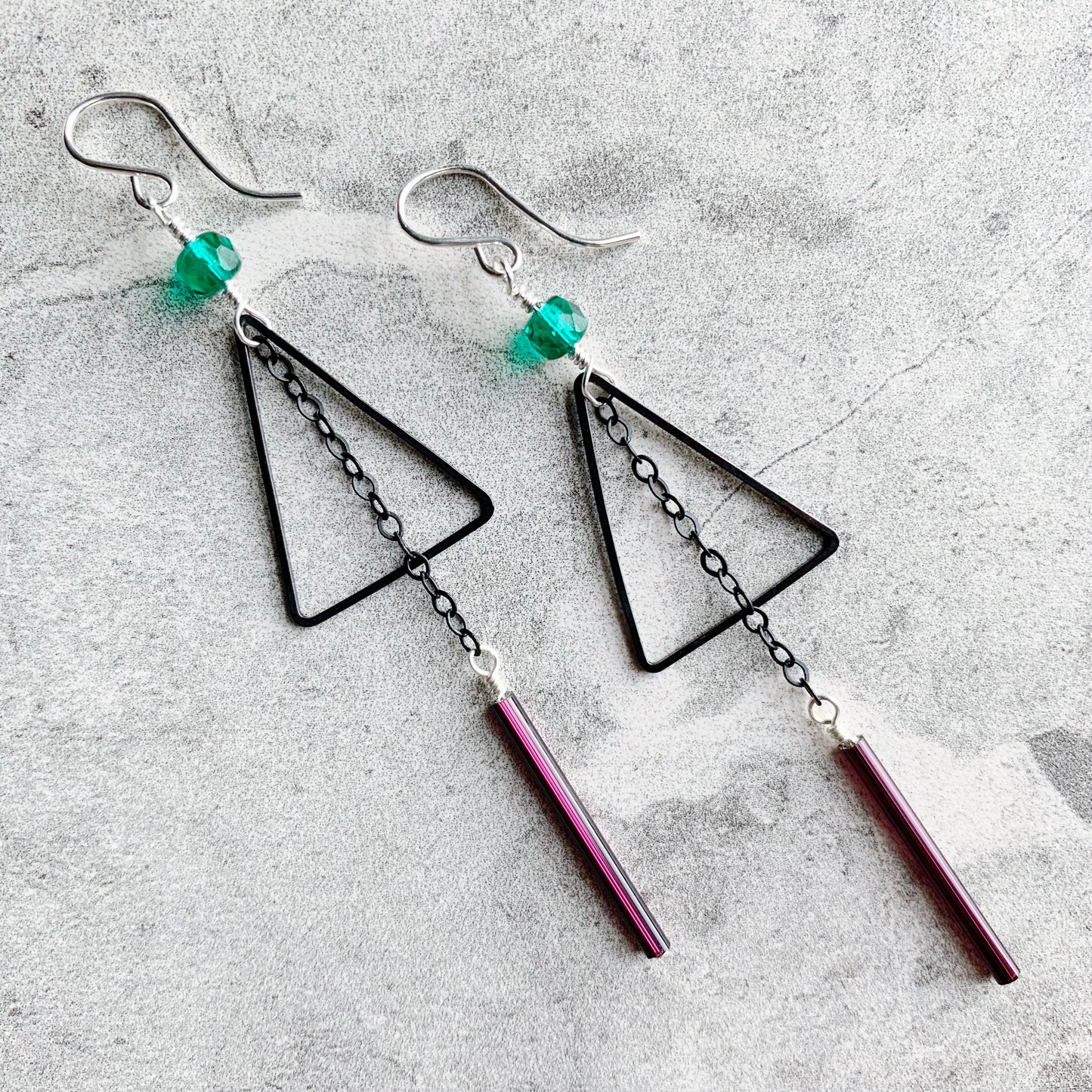 Colorful and lightweight Boho style earrings with tons of sparkle, delicate chain and cool black accents that make those colors pop!