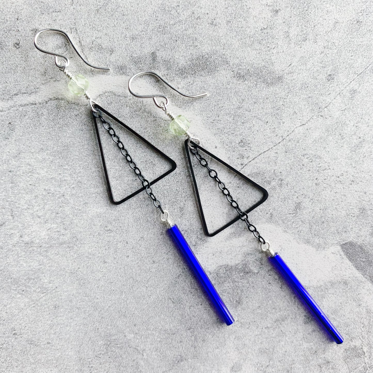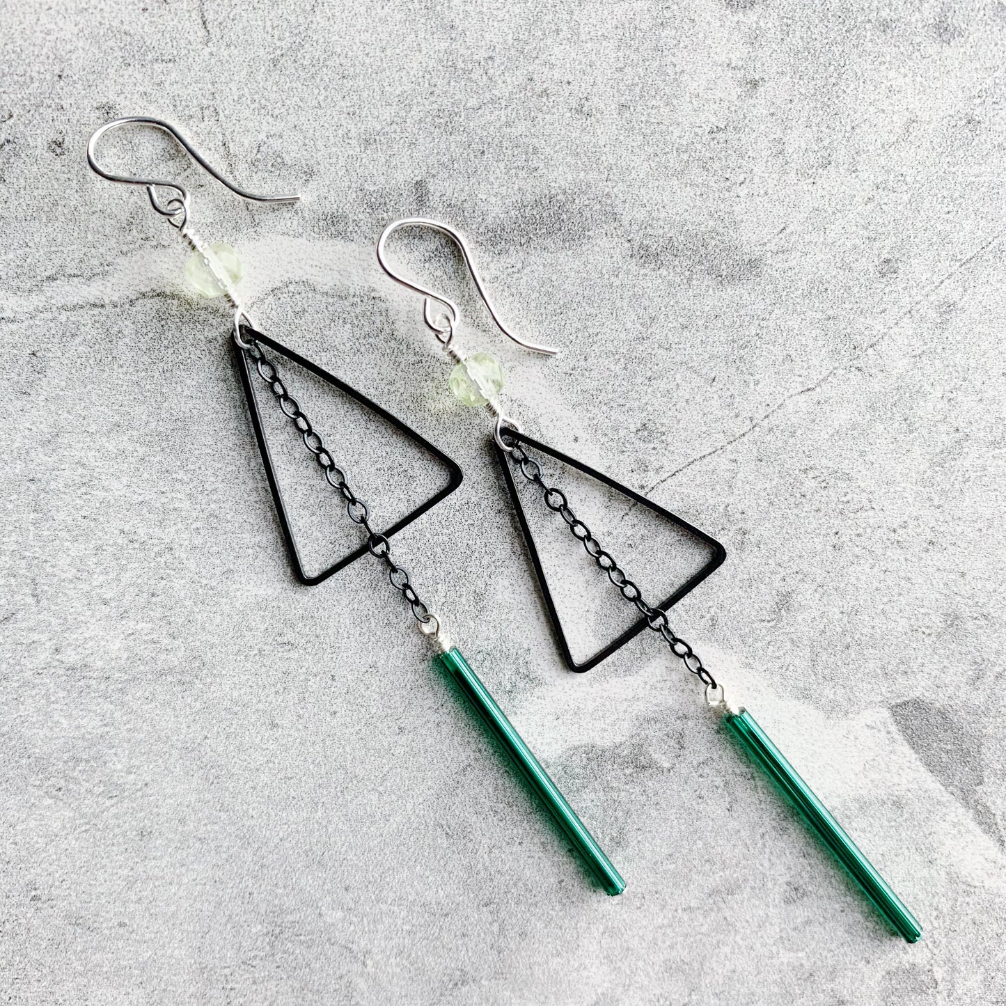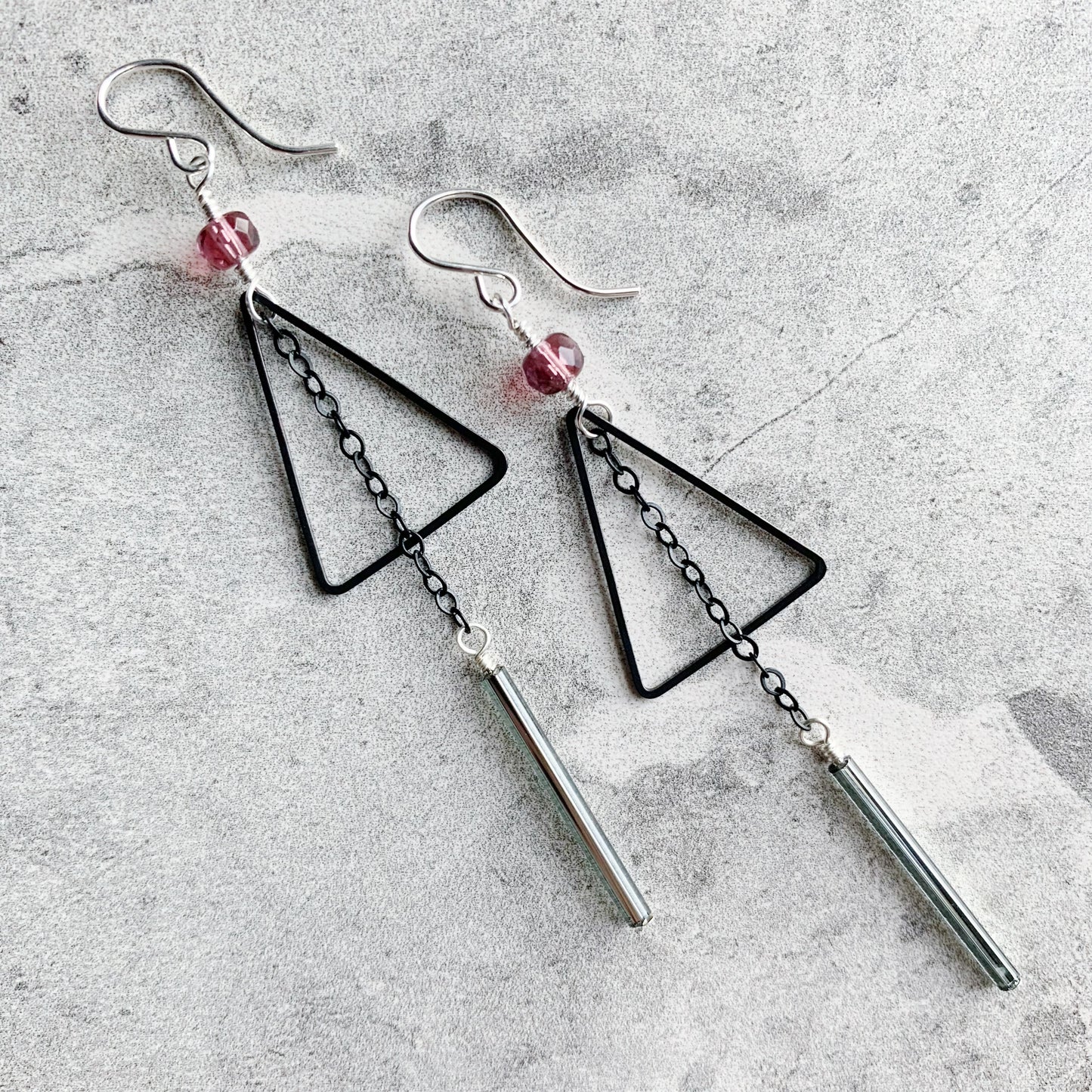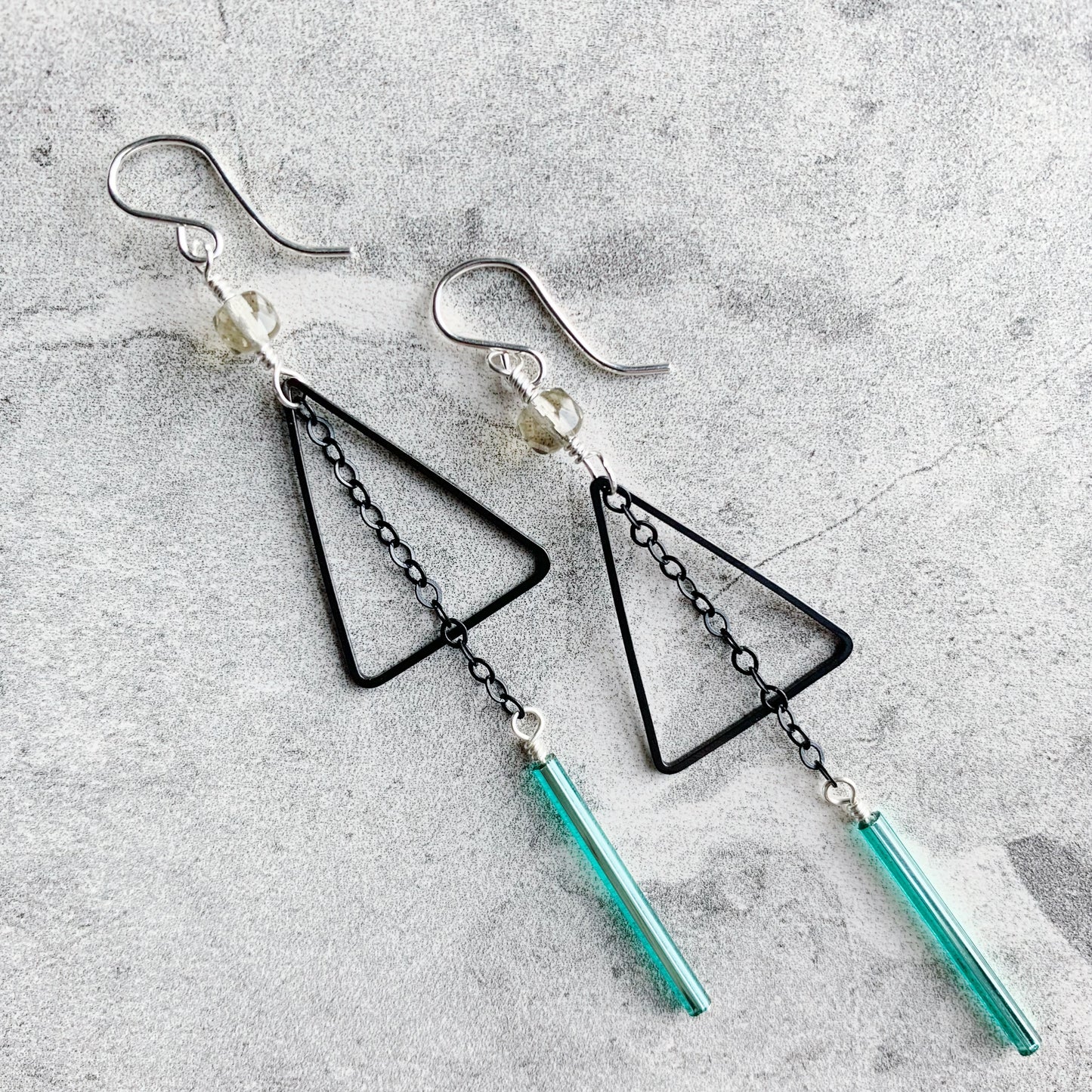 Colorful and lightweight Boho style earrings with tons of sparkle, delicate chain and cool black accents that make those colors pop!