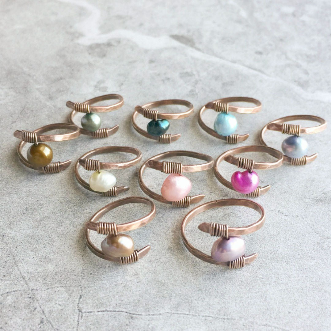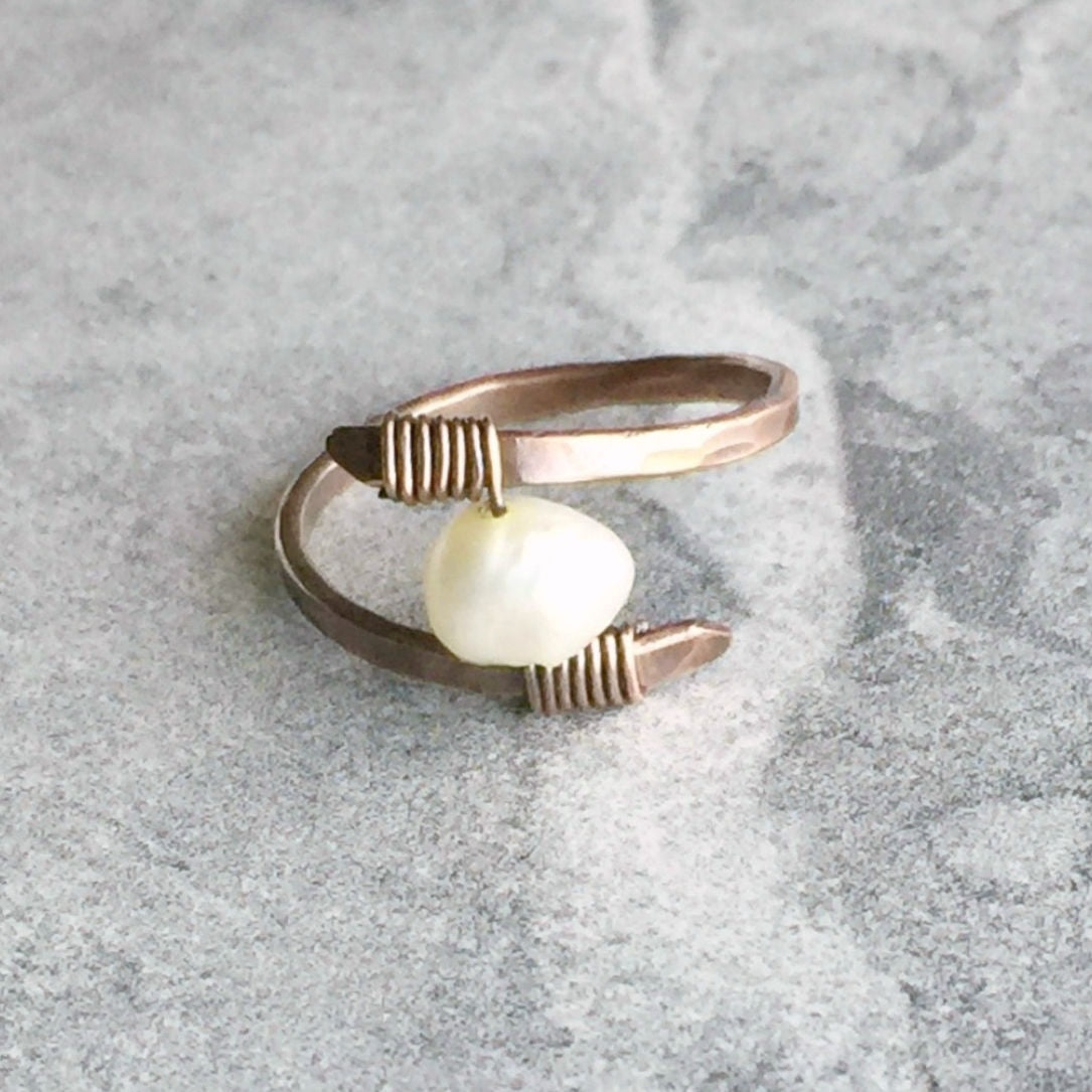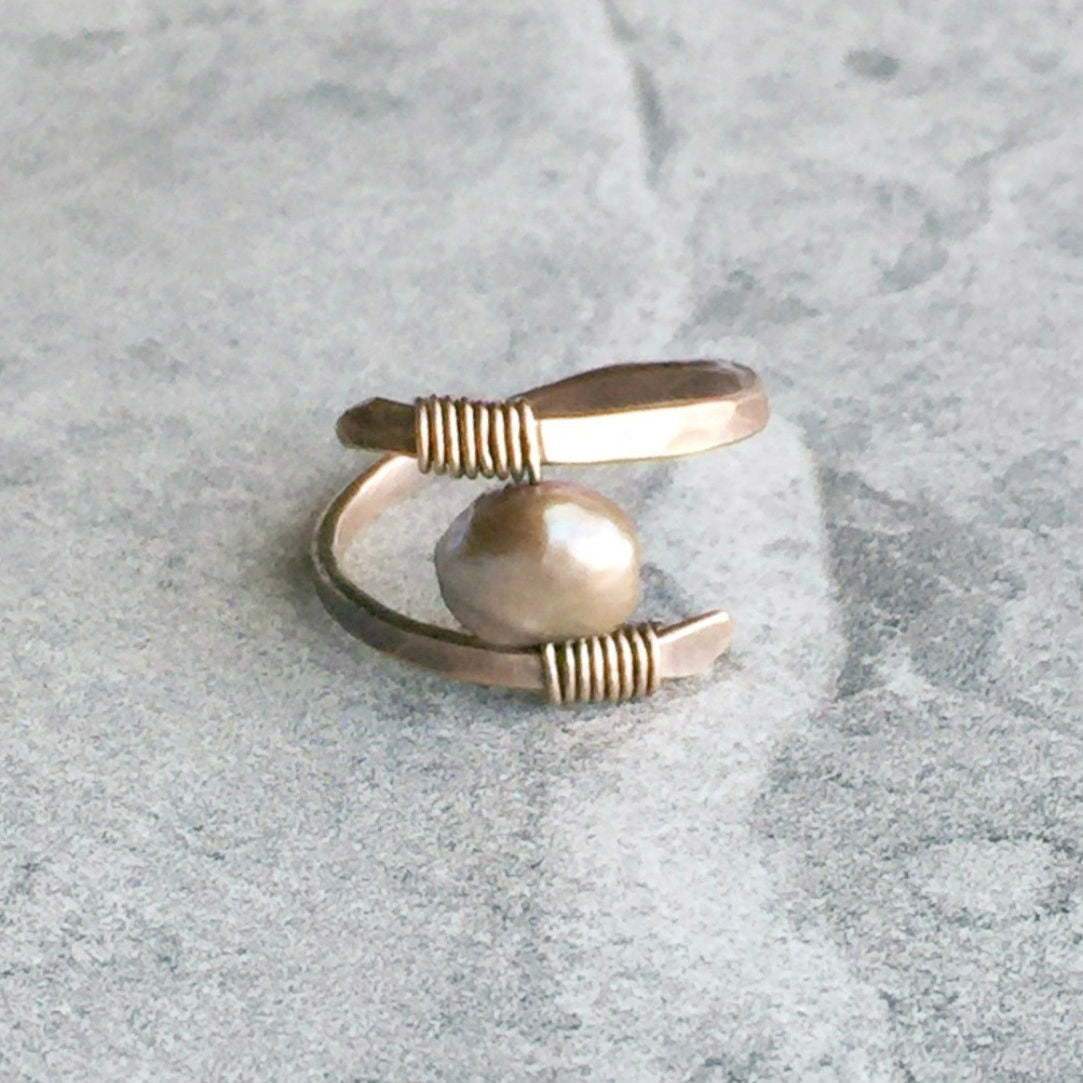 Wrap around style freshwater pearl ring, beautiful alone or stacked together.